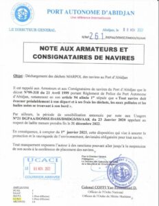 Earlier this month, the Port of Abidjan reminded ship agents that in accordance with 21 April 1999 decree no. 99-318 on Abidjan’s Port Police regulations, the so-called “awareness period” regarding waste, waste oil and sludge disposal ends on 31 December 2022.