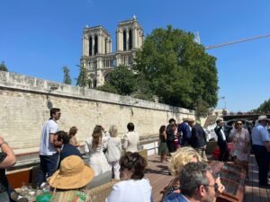 The festivities began with a private cruise along the Seine River aboard the elegant MY Excellence, a beautiful 53-meter yacht featuring spacious decks, mahogany woodwork, and polished brass fittings. Against a backdrop of clear blue skies, guests enjoyed breathtaking views of Paris’ iconic landmarks while sipping champagne and engaging in conversations with both old and new acquaintances.