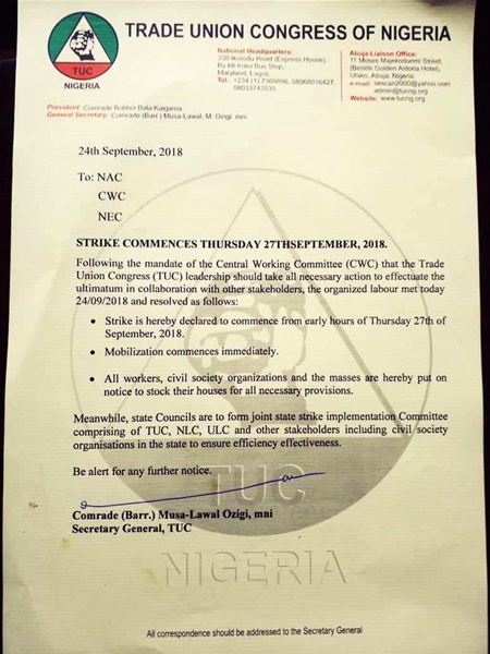 strike has brought activity in Nigeria’s ports to a standstill. No vessels are berthing and none are